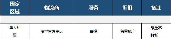 2) 本次活动各地区优惠价格(人民币/元) 及指定的物流服务商如上表所述。活动期间内每位淘宝网会员于每个地区可享一次优惠,优惠人数不限。
