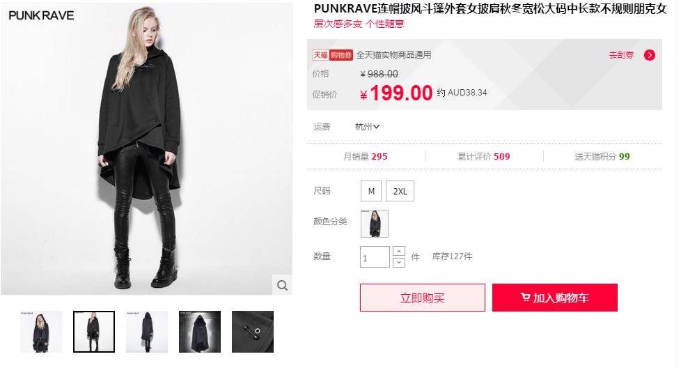 可以选择折扣逆天的这款朋克系的巫师斗篷。