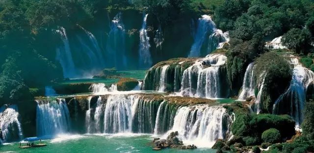 方圆20公里的景区山清水秀,山环水绕,素有小桂林之称。这里翠竹绕岸,农舍点缀,独木桥横,稻穗摇曳,农夫荷锄,牧童戏水,风光俊朗清逸,极富南国田园气息。国家邮政局首次公开发行《祖国边陲风光》特种邮票一套12枚,明仕田园风光命名为《桂南喀斯特地貌》(第七枚)入选邮票题材。乘车赴德天景区(车程约1小时),徒步游览亚洲第一大、世界第四大【德天跨国大瀑布】(游览时间约2小时)。