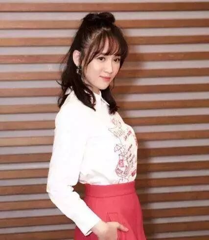像宋茜这样空气刘海配丸子头,更加时尚灵动,用高发髻减轻了头顶的厚重感,刘海自然看着也轻薄了。