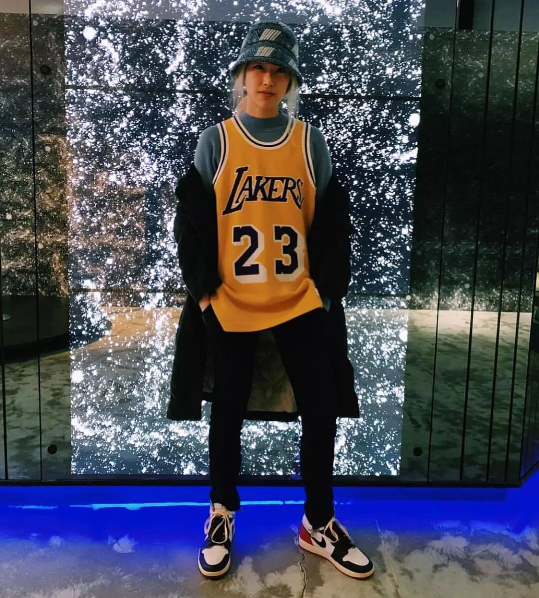 由冠希和好友 Elle Hu 率先演绎,相比 Nike 的 NBA 球衣细节有非常明显的区别。联名款在材质上更加厚实,风格以复古休闲为主,而 Elle Hu 其实已经提前很久就多次穿过这件联名球衣。