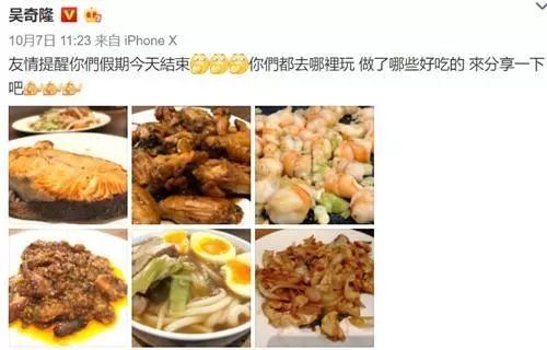 圣诞节都已经过去了,吴奇隆才慢悠悠的在微博上晒出一大堆的美食照片,还问大家昨天都去哪里啦。