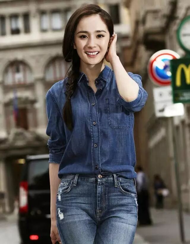 杨幂现在是剪短了,可是长发的她,可是很爱扎侧马尾辫的哦。