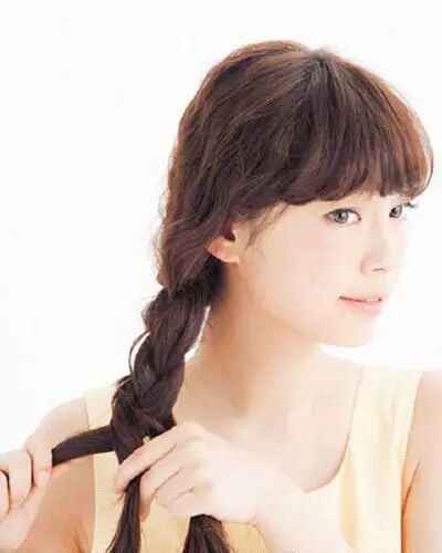 来看看最后的效果吧,蓬松的编发设计,甜美的空气感刘海,是不是看上去就很清新甜美,有带有一点点的文艺呢。