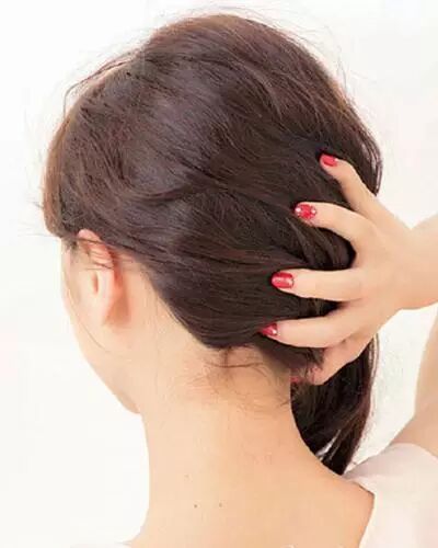 之后用手现将头发固定,注意扎发的位置哦,略微在耳朵背后就可以。