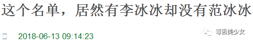 其中有人疑惑为什么有李冰冰没范冰冰?