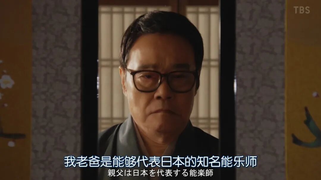 由长濑智也扮演的观山寿一出身在一个日本传统世家,他的父亲观山寿三郎(西田敏行饰)以二十七世观山流宗家的身份,保持着“能”这重要的非物质文化遗产,被称为“人间国宝”,并且全日本有一万多弟子(每年要收多少钱?)。