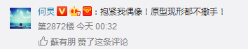 随后,何老师也火速出现,进行了一波卖萌+夸赞,苏有朋给何老师的评论点了一个赞。