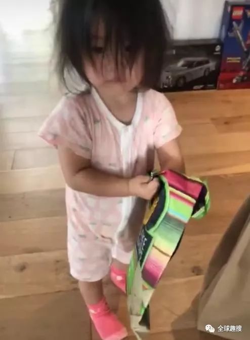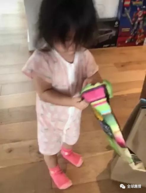 看陈冠希发布的一段短视频中,可以看出女儿Alaia披头散发的出现在镜头前,看起来像刚起床的无辜样子,也不是很开心,但是却拿着手中的玩具在玩了。