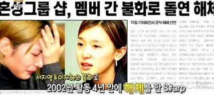 2002年10月这个当红组合却突然解散。解散的原因居然是两名女成员之间的暴力事件——据说两人曾在KBS现场大打出手。
