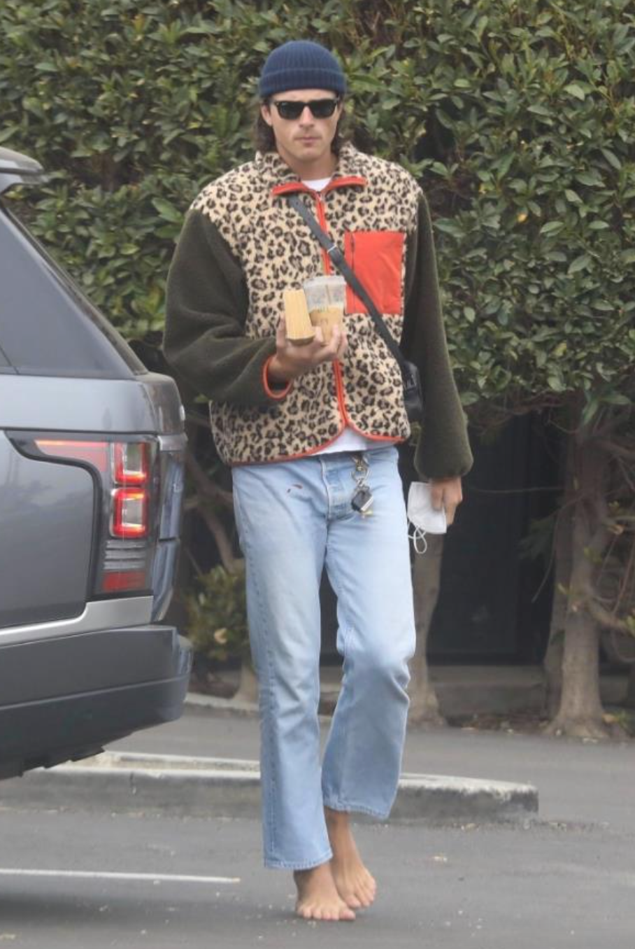说唱歌手Jacob Elordi被拍到穿戴整齐地光脚上街▽