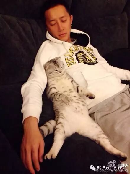 但是照顾起喵星人来,韩庚绝对是个合格的铲屎官。看这父爱如山的画面,感人吗羡慕吗!