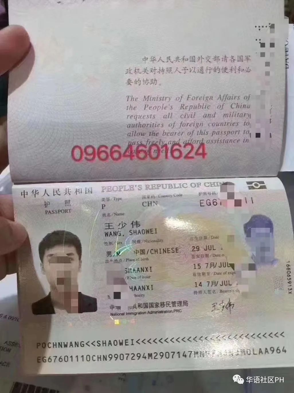 从护照上没被马赛克的部分看来, 小伙子是陕西人。 现年20岁,再过20天就是满21周岁。 去年七月签发的护照, 菲律宾二月禁止中国人入境, 小伙在菲律宾待的时间已经至少五个多月, 旅游签证是肯定过期的。 去移民局, 一是改签或延期, 二是办理ECC准备回国。