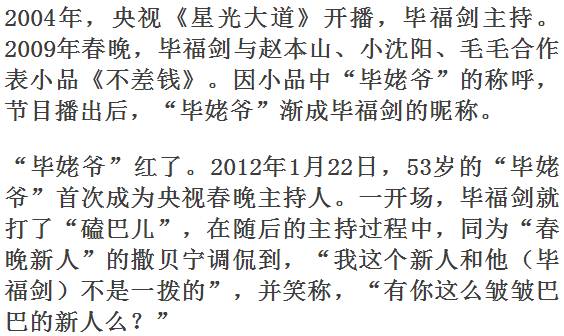 刚进央视时,毕福剑被分配到文艺部当秘书。“让我接电话、扫地。那你没办法,每个刚来的大学生都得干这些。”