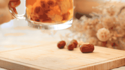 2. 将罗汉果、红枣、杭菊倒入锅中。