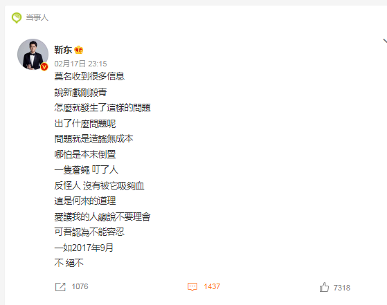 2月18日,一条靳东回应剧组拖欠工资的词条登上微博热搜,引发关注。