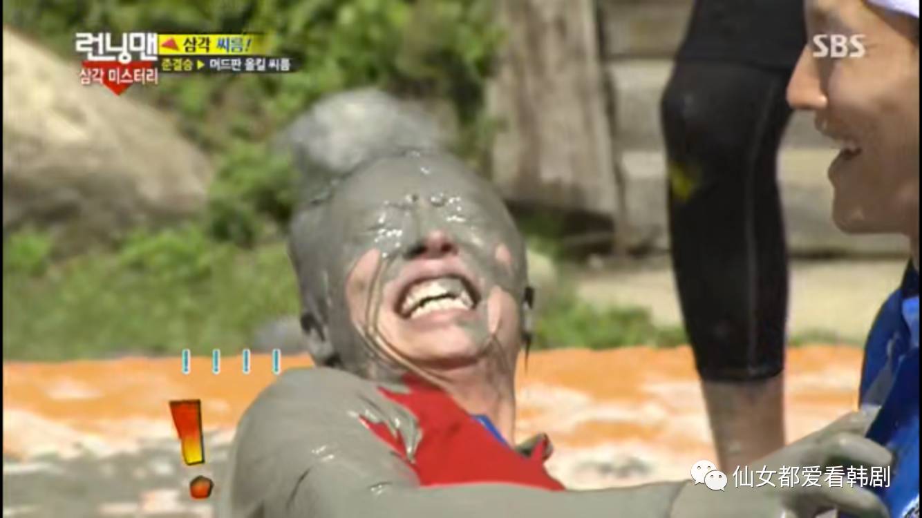 说起游戏,怎么能少得了泥坑!出现了刘大神最想删掉的“屈辱”片段,被老虎拉着好好洗了个泥浆浴~