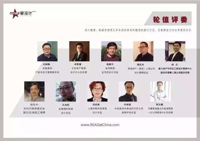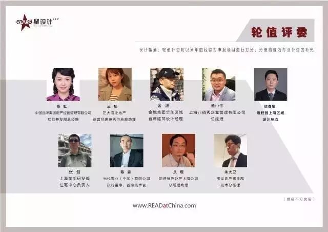 值得一提的是,REARD中国地产设计网与亚太设计中心的完美合作更让此次大奖频添异彩。今年的颁奖典礼,除了有来自全国各地的开发商评委代表参加以外,美国AIA设计委员会主席Carol R.Bentel,香港方振华设计有限公司创办人Patrick Fong,巴西设计中心创始成员Clandya Piazera,国际著名设计师和艺术家Niels Peter Flimt等国际评委也将亲自莅临颁奖。REARD地产星设计大奖作为首个在上海W酒店举办的地产设计类奖项也正在紧锣密鼓的策划中,国际和地产评委亲临颁奖也预示着REARD地产星设计大奖带领中国建筑、景观、室内设计机构敲响世界设计的大门。
