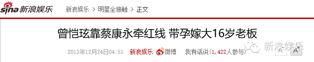 后来证实这事儿完全不靠谱,因为大幂幂怀着糯米还是拍了《小时代》。而曾恺玹也是够洒脱,没有接着这个火劲儿继续往上“爬”,而是嫁给了比她大16岁的老板,还是闪嫁!