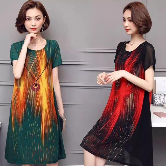 唯美撞色印花设计,时尚美观,贴身剪裁,将女性的曲线美展现的淋漓尽致