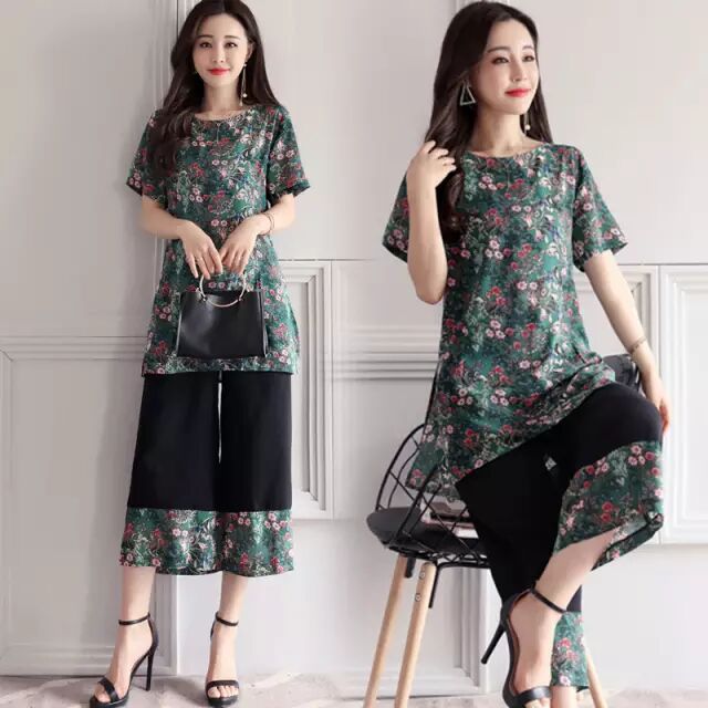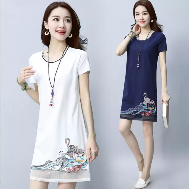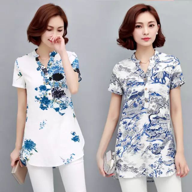 水墨印花清雅悠然,纯棉喇叭半袖,清爽秀气,透气舒适