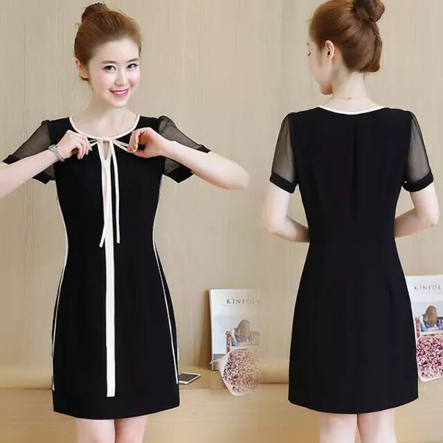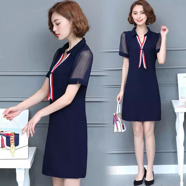 衬衫领直筒连衣裙知性显年轻,领口条纹飘带装饰醒目吸睛