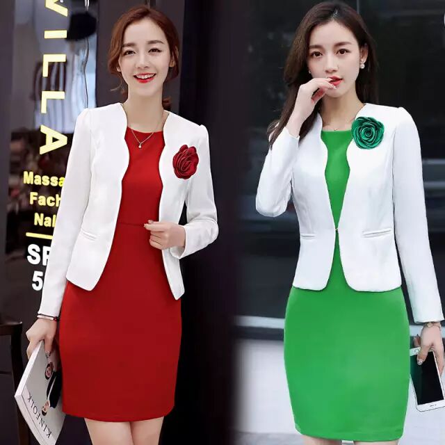 纯色衣裙凸显优雅气质,花瓣门襟小西装精致时尚