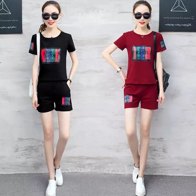 字母印花套装潮流百搭,撞色条纹点缀清新抢眼