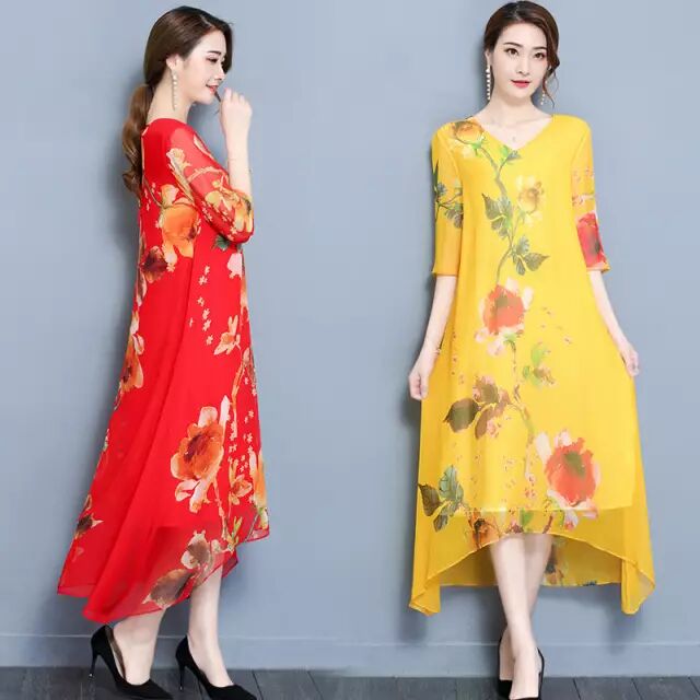 轻盈雪纺开衩连衣裙潮流性感,不规则印花,凸显个性时尚