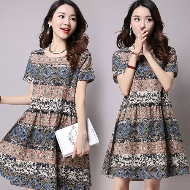 印花与纯色布料拼接带来轻松的视觉体验,民族风的印花雅致极了
