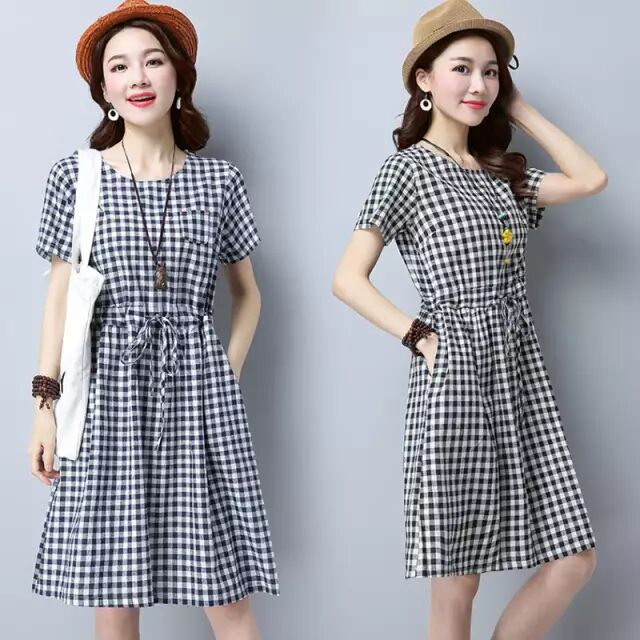 简约的格纹连衣裙,系带收腰设计勾勒完美比例!