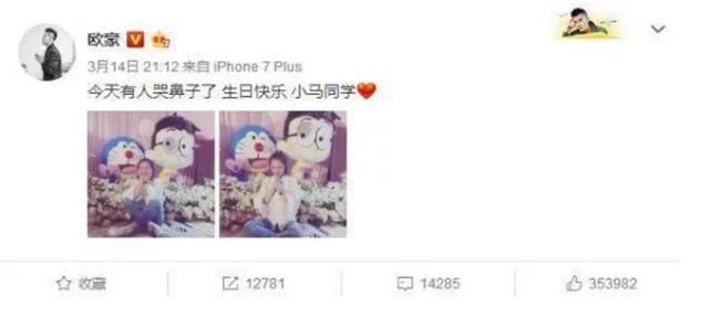 马思纯把欧豪比喻成哆啦A梦 和照片里代表的是一样