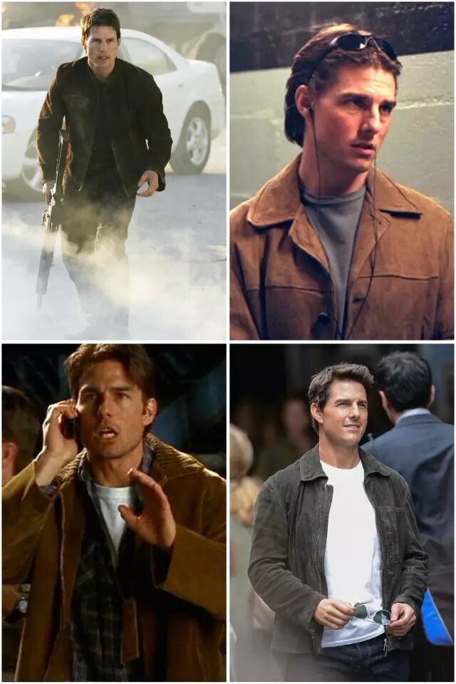 阿汤哥真的很爱麂皮夹克,特别是在碟中谍系列里,麂皮夹克跟亮面皮夹克视觉感受上最大的区别就是低调!相当低调!但是细看又比亮面皮夹克更值得玩味,因为阿汤哥的相貌太端正,硬朗的皮夹克穿在他身上也真是感觉太呆板。