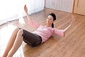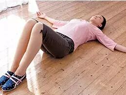 3、上体保持,两臂缓慢向两旁打开并放到地面上。然后上身和头慢慢回到地面。重复5~10次。