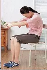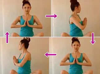 4、双手交叉,手背朝外,向前拉伸,含胸背,打开肩胛骨。做的时候一边呼气,伸到极限时保持5~10秒。