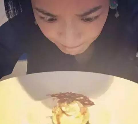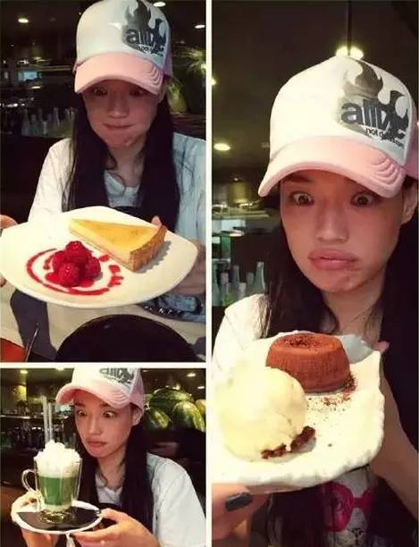 吃不到嘴里,女神只好拍拍照过瘾,晒美食≠吃美食