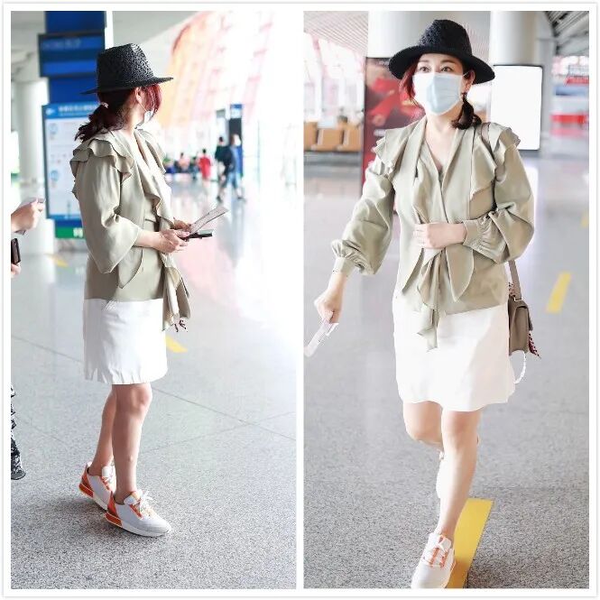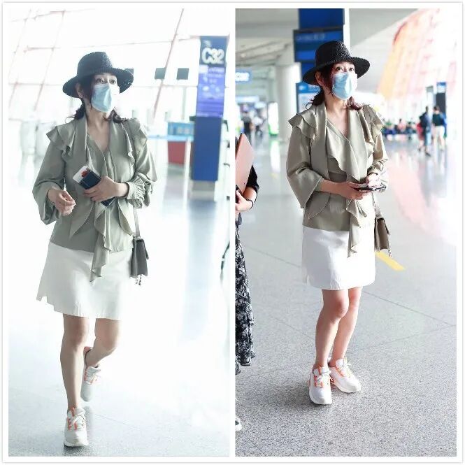 陈松伶荷叶边衬衫配短裙,虽然不太显瘦,但是看着很舒适,自信的人穿什么都不会在乎别人的眼光,自己喜欢就好,但是多注重一些穿搭细节,显出自己的身材优势,能使自己的气质变得更加完美。