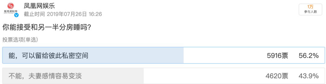 果不其然,节目播出后#李艾与丈夫分房睡#的话题立刻引起热议,甚至网上还发起了一场“你能接受和另一半分房睡吗”的投票。