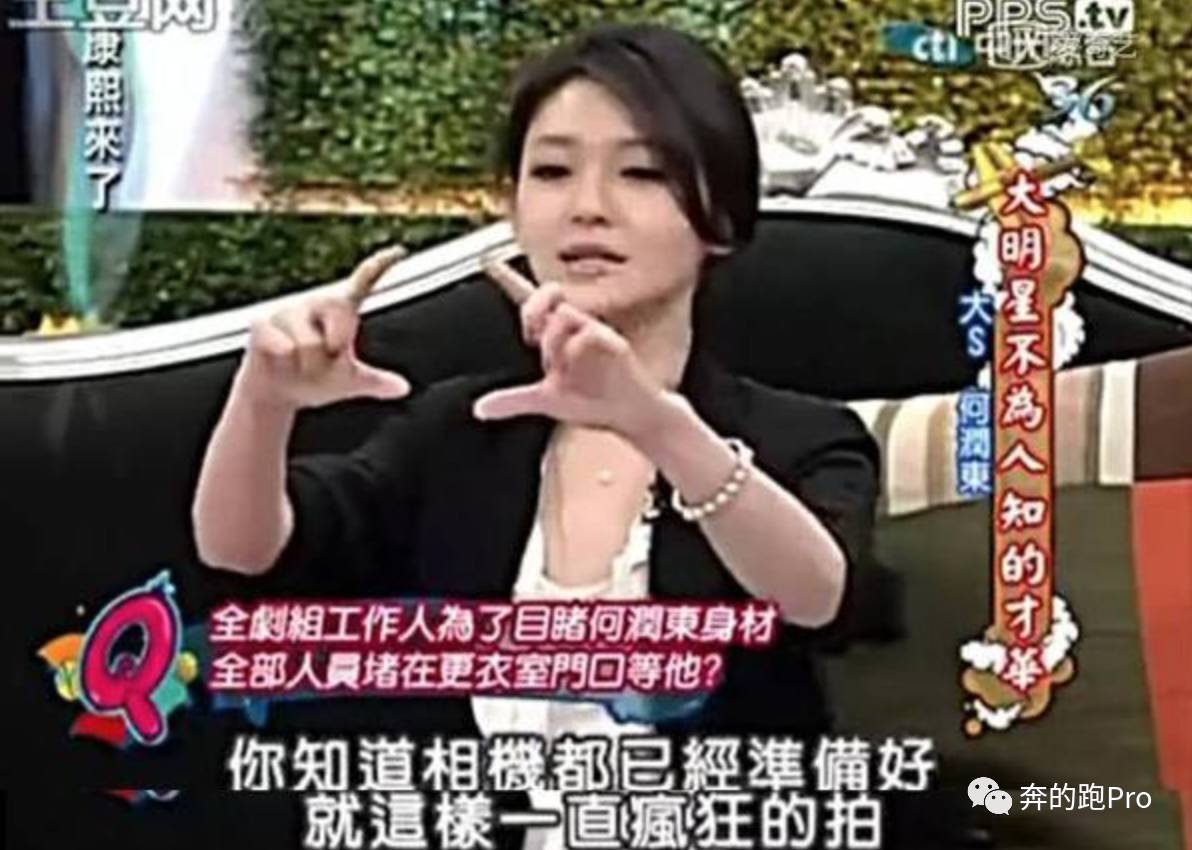 果然,何润东刚进更衣室换衣服,大S就赶回片场了。她跟导演等工作人员集体说服何润东穿上了三角紧身内裤。