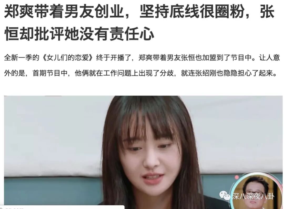 可是这一次的“事业”,似乎还是没有离开身边男性的思考。谁都知道她有个比女儿更想红的爸爸,曾经以为只会被爸爸影响的郑爽,现在生活里又多了一个想时刻指导别人人生的超级直男张恒,难怪两个男人的战争,看上去一触即发了