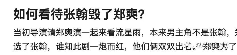于是就有很多粉丝鸣不平,尤其是结合之前郑爽在感情的卑微,所以突然就有了这么个说法:郑爽是被张翰给毁了