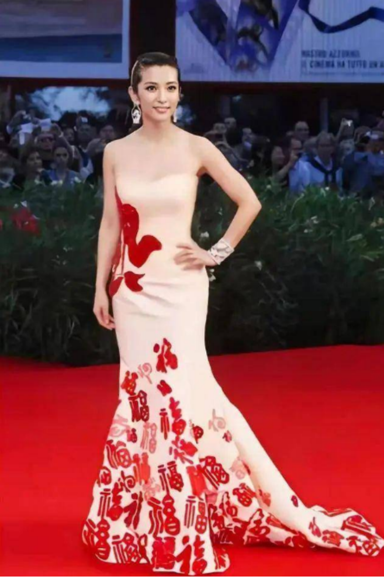 值得一提的是,李冰冰这条裙子还结合了国风,用简约的白色作为底衬,上半身绣了一个大大的“福”字,下半身更是由多种写法的“福”字组成。