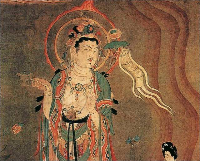 菩萨右手持长柄香炉中,一丸香徐出烟。