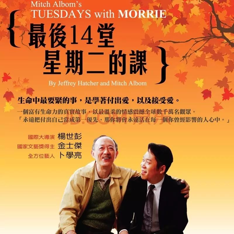 《最后14堂星期二的课》根据美国著名作家米奇。阿尔博姆的畅销书《相约星期二》改编,在全球被翻译成31国语言,销售逾1400万册!两岸三地,幕前幕后,艺文人士,大力捧场,金士杰、卜学亮主演果陀剧场年度大戏《最后14堂星期二的课》,至今创台湾话剧加演记录,两岸演出超过130场,越15万观众热烈推荐!