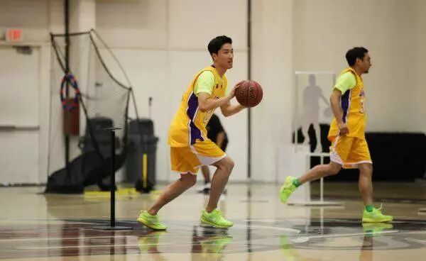 刘翔站在篮球场上,打球的样子也是有模有样。