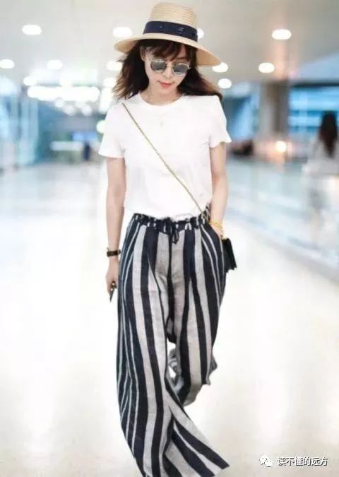 张静初身穿白色的T恤,搭配一条宽松的阔腿裤,竖行的黑色大条纹,让她看起来很利落,一走路就甩出了好看的弧度,添了几分气势,又显得张静初帅气十足,还有几分文艺感,真是美得移不开眼睛呀!