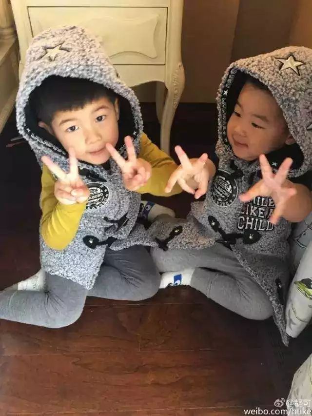 婚后很快俩人有了两个可爱的儿子,胡可更是为家里的三个宝宝(还有一个老宝宝)放弃了自己的事业。
