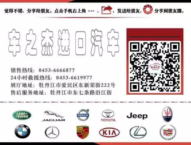 欢迎关注牡丹江华信亿鑫进口汽贸,本公司经营路虎、沃尔沃、捷豹、克莱斯勒、JEEP、丰田、奔驰、宝马、进口起亚、雷克萨斯、卡迪拉克等车型.并可办理二手车置换、贷款等业务.地址:牡丹江桥北东新荣街222号....