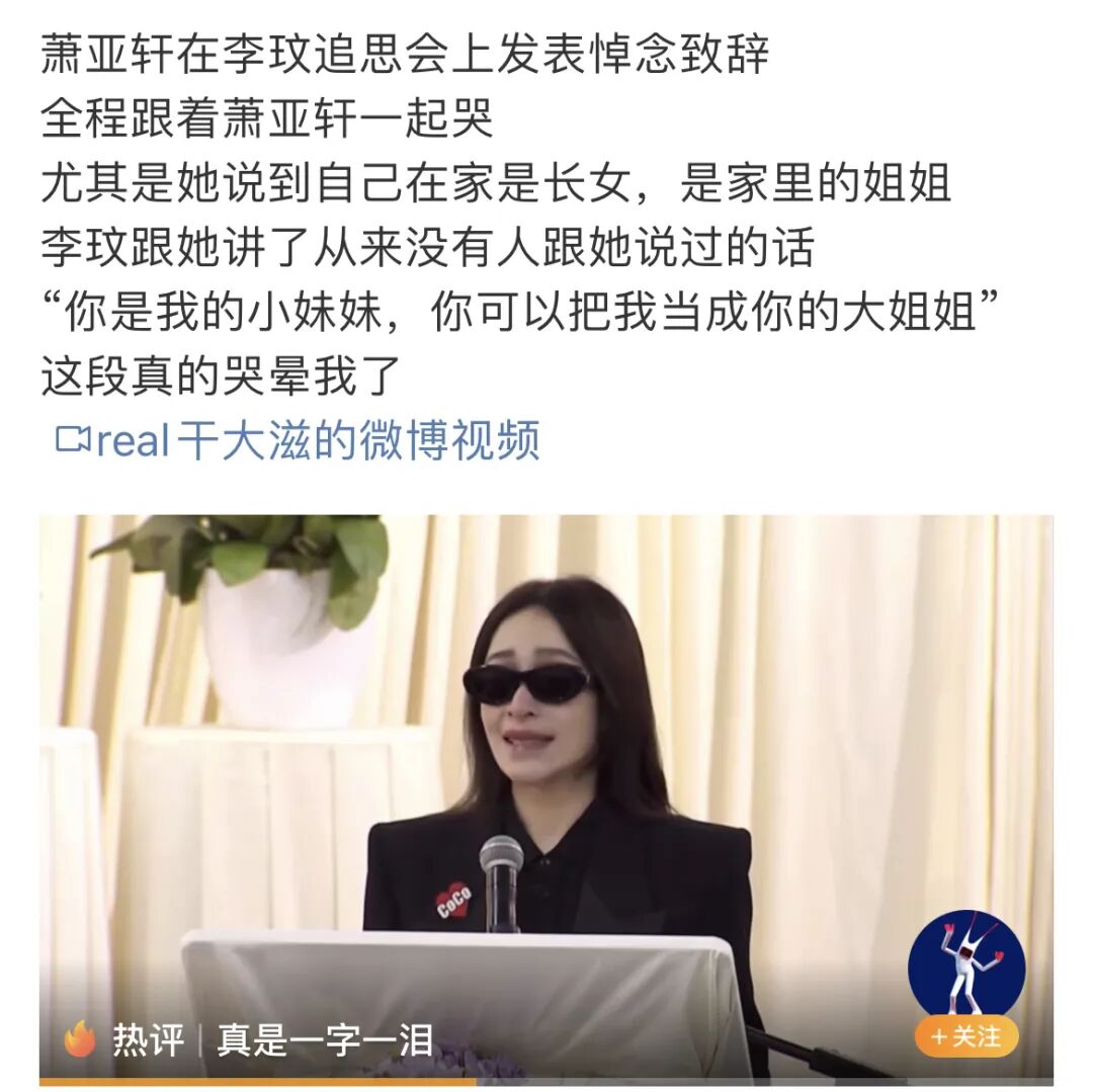 前不久的追思会上,萧亚轩一字一句,哽咽着说不出一句完整的话。她是家中长女,从来没有被宠爱过,只有李玟告诉她:“你是我的小妹妹,你可以把我当成你的大姐姐。”