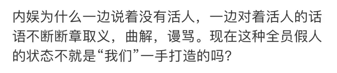写到这里,小视已经分不清,究竟是严苛到指甲缝的审视让内娱活人变少,还是过多的作秀炒作,让观众们已经不愿意相信内娱有活人。
